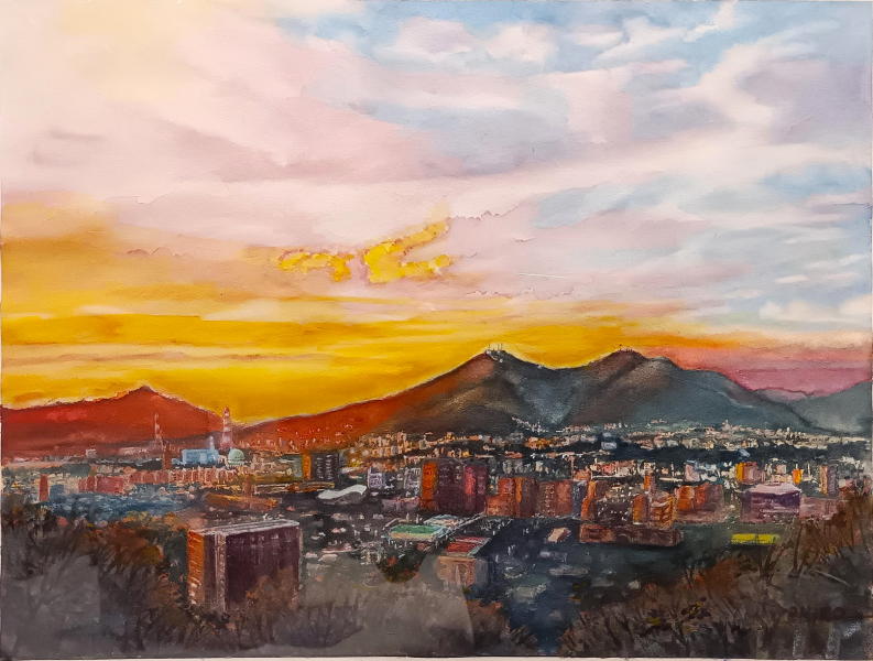 『朝焼けの皿倉山』